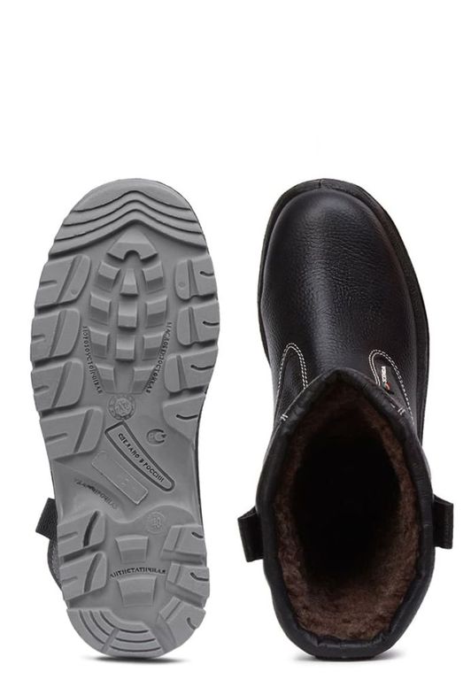 Верх сапог выполнен из натуральной кожи. Подкладка выполнена из шерстяного меха. Подошва двухслойная PU/TPU: Полиуретан придаёт мягкость, снижает нагрузку при ходьбе, что в свою очередь, позволяет ногам меньше уставать; Термополиуретан – гибок и прочен, поэтому, обувь прослужит долго. Литьевой метод крепления подошвы обеспечивает с верхом обуви единое целое, в результате достигается полная герметичность в месте литья. Такой метод крепления является самым прочным и долговечным на сегодняшний день. Подошва сохраняет свои свойства в диапазоне температур от -30°С до +120°С Металлический защитный подносок способен выдержать ударную нагрузку в 200 Дж. Произведены с учётом ТР ТС 019/2011, ГОСТ 12.4.137-2001, ГОСТ 28507-99, ГОСТ 12.4.187-97, что подтверждает защиту от внешних повреждений, химич. факторов, механич. воздействий.