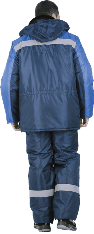 Костюм состоит из куртки и брюк. В костюме используются световозвращающие
