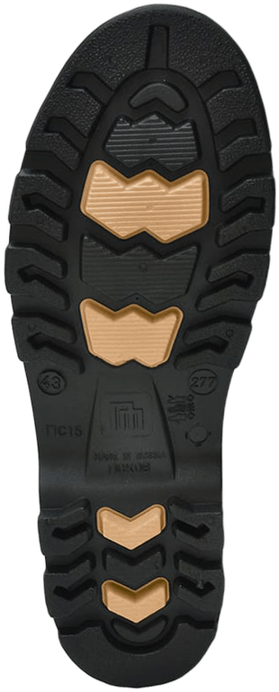 Особенности: модель обладает повышенной комфортностью по сравнению с двух-компонентными моделями. Промежуточный слой подошвы (вспененный ПВХ) придает модели высокие амортизирующие свойства. Защитные усилители на внешних и внутренних сторонах голенища предохраняют щиколотки от боковых ударов. Подошва обладает самоочищающим профилем и гарантировано защищает от скольжений по мокрым и зажиренным поверхностям.