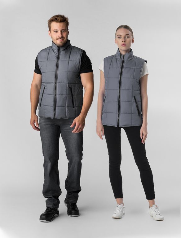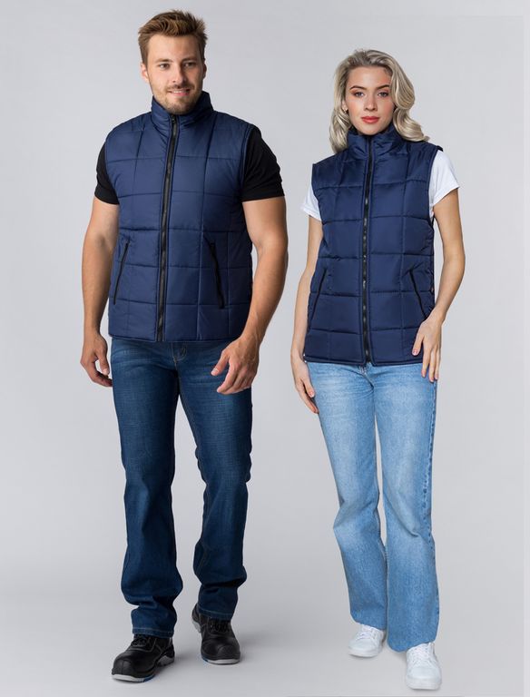 Жилет утепленный «Офис» выполнен в классическом фасоне из высококачественных материалов. Стеганый жилет прямого кроя подходит как мужчинам, так и женщинам, прекрасно садится по фигуре, выступая отличным дополнением повседневных и рабочих образов. Благодаря плотной ткани с влагоотталкивающей пропиткой жилетка надежно защищает от осадков и отличается износостойкостью. Утеплитель синтепон помогает сохранить тепло, а воротник-стойка закрывает шею от ветра. Безрукавка дополняется удобными боковыми карманами на молнии. Для указания ФИО присутствует этикетка с изнаночной стороны.