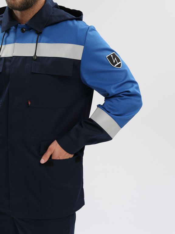 Основной материал: ткань "Атлант-Антист" 60% хлопок / 39% полиэстер + 1% антистат.нить, плотность 245 (+/-10) гр/м2.