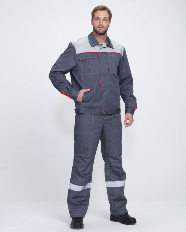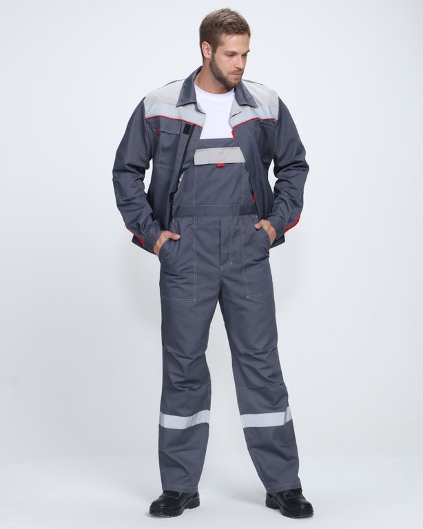 Спецодежда мужская оснащена широкими светоотражающими полосами 50 мм по цветной кокетке, благодаря чему подходит для работы в местах с плохим освещением. Костюм с анатомическим кроем коленей и рукавов обеспечивает свободу движений. Униформа дополняется удобными карманами с клапаном и отделением для ручки как на куртке, так и полукомбинезоне. Куртка прямого кроя застегивается на скрытую молнию. Для быстрого расстегивания предусмотрены паты. Благодаря расширительной складке на спине куртка удобна в работе, а усиление на локтях препятствует истиранию материала и обеспечивает долгий период эксплуатации.