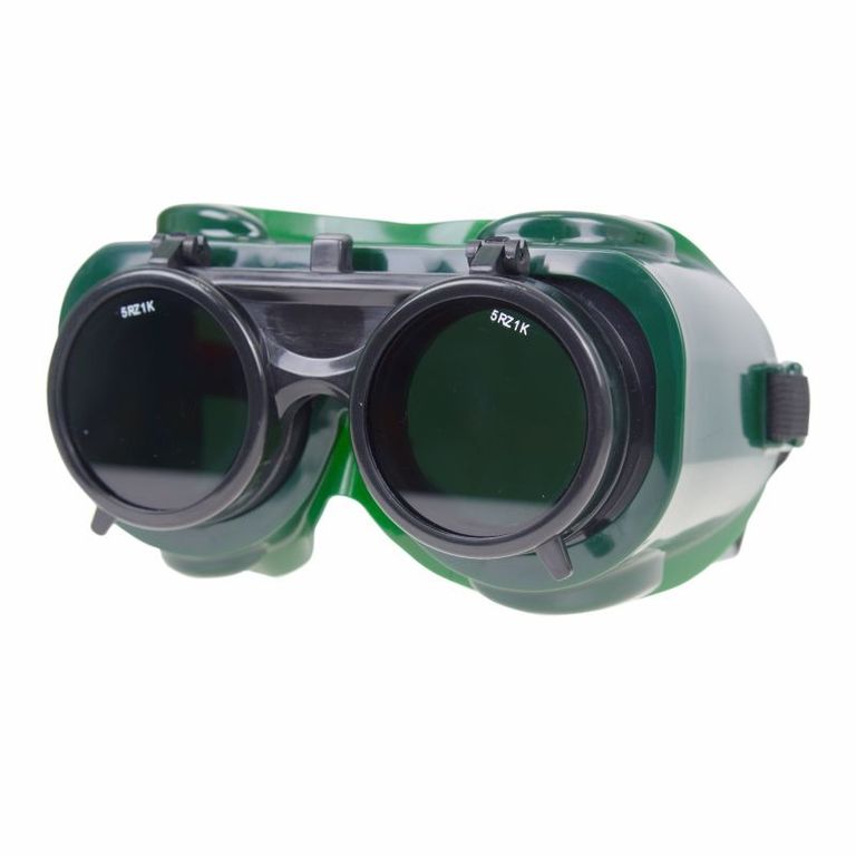 Очки с откидным блоком из термостойкой пластмассы с защитными минеральными стеклами и внутренними стеклами из бесцветного поликарбоната РС. Конструкция 2 в 1 позволяет вести работы: с опущенным стеклодержателем - связанные с опасным для глаз излучением, с поднятым стеклодержателем - связанные с защитой глаз от воздействия твердых частиц. Мягкий корпус из ПВХ.