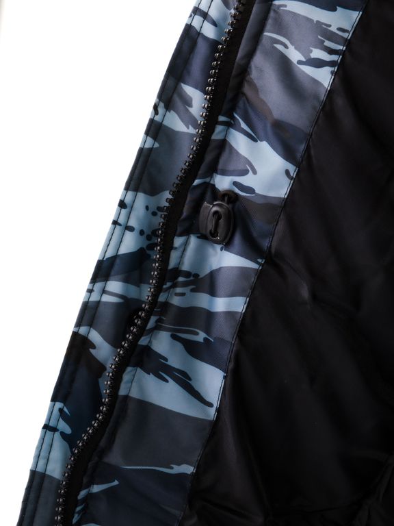 Застежка куртки: молния и ветрозащитный клапан на кнопках.