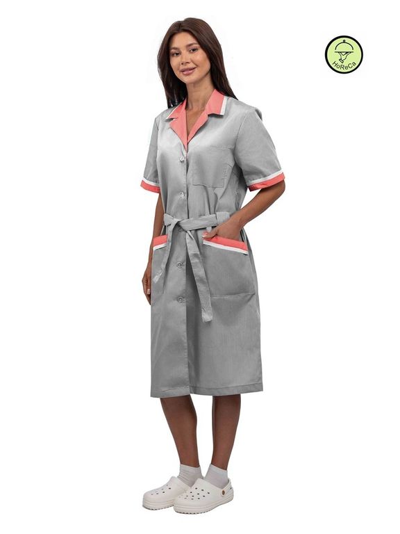 - Воротник: отложной с контрастной отделкой кораллового/белого цвета.