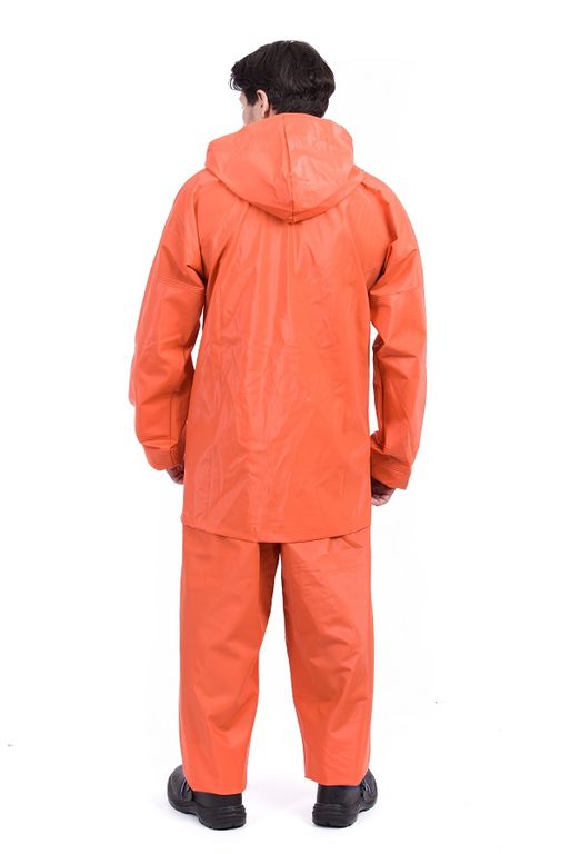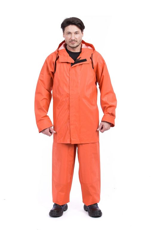 Состоит из куртки, застегивается на молнию и липы, внутренние манжеты на рукавах надежно защищают от попадания воды, с капюшоном и полукомбинезона регулируемого по ширине с помощью кнопок.