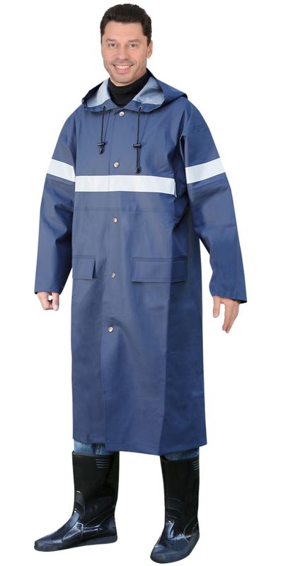 Плащ из прочного, но при этом мягкого и эластичного материала на полиэфирной основе с ПВХ-покрытием, с герметичными сварными швами.