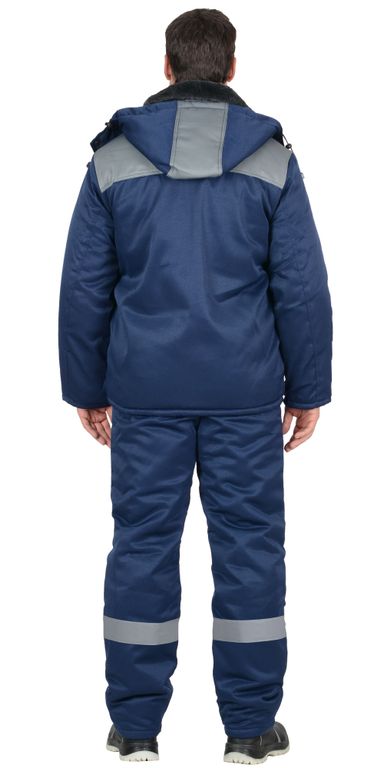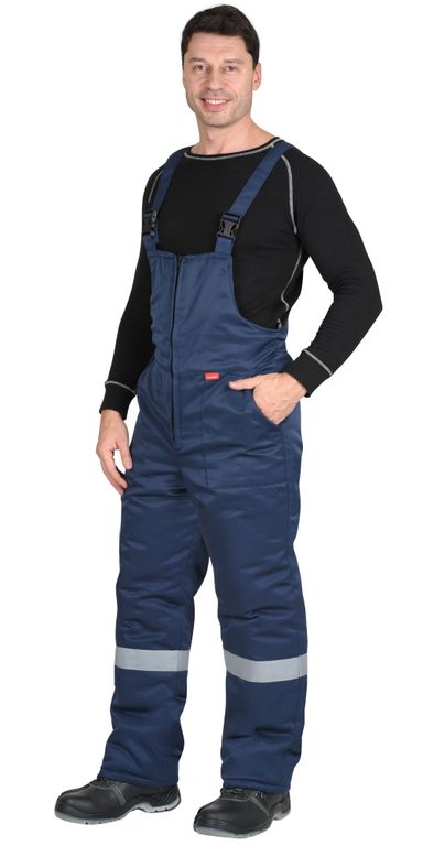 Полукомбинезон прямой; с центральной застёжкой на двухзамковую тесьму - «молния»; с накладными боковыми карманами; с резинкой ткацкой по спинке, для лучшего прилегания. Бретели регулируются при помощи резинки помочной и пряжек фастексов. По низу полкомбинезона предусмотрена лента светоотражающая 50мм для обеспечения сигнальной видимости.