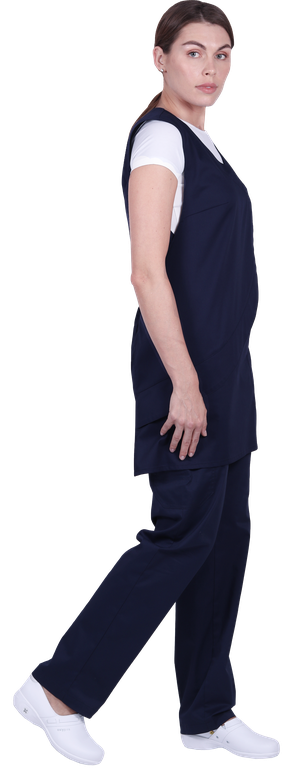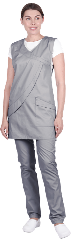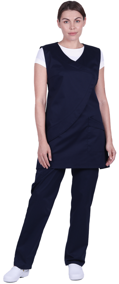 • накладной карман фигурной формы с петлей для бейджа на нижней части, разделен на две секции