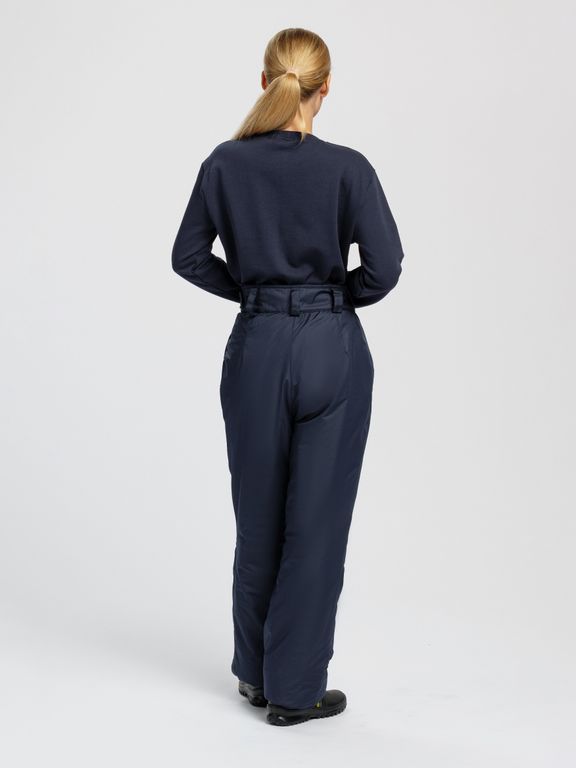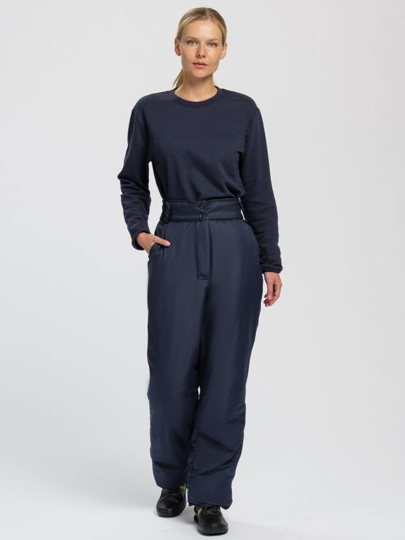 Зимние брюки производятся из плотной ткани «таслан», отличаются легкостью, прочностью и длительным периодом эксплуатации. Мембранное покрытие водонепроницаемостью 8000 мм и влагоотталкивающая пропитка не дают промокнуть даже в сильный снегопад или дождь, отлично защищают от загрязнений. Высокий пояс брюк закрывает спину от сквозняков и препятствует переохлаждению поясничного отдела позвоночника, а утеплитель синтепон замечательно сохраняет тепло. Зимние штаны женские дополнены вытачками на коленях и в области талии, благодаря чему не стесняют движения. Пояс брюк регулируется по объему с помощью пат на пуговицах и обеспечивает комфортную посадку по фигуре.