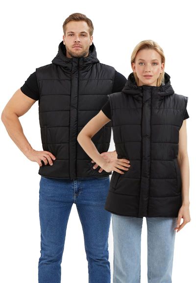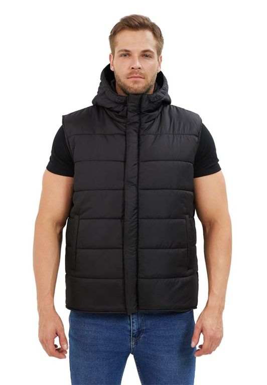 Жилет мужской, прямого силуэта, утепленный, простеган декоративными строчками с двумя слоями утеплителя: