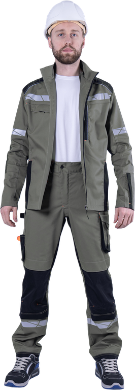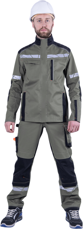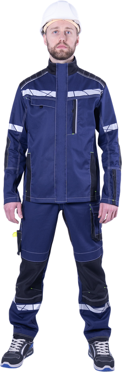 • по кокетке спинки, плечевой вставки полочки, в нагрудном вертикальном кармане кант из двухсторонней световозвращающей полосы.