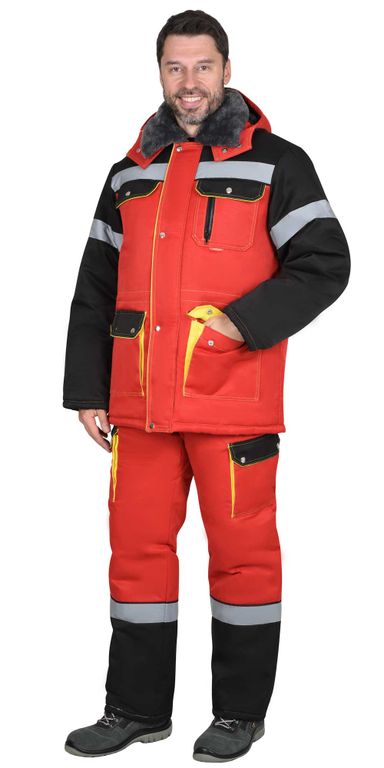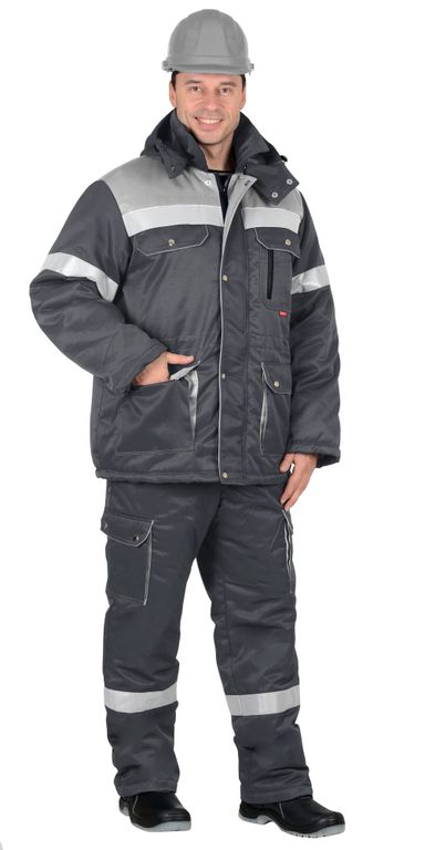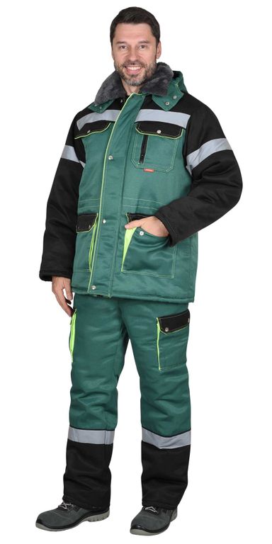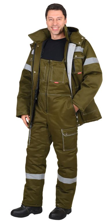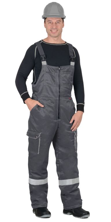 Полукомбинезон прямой; с притачной утепленной подкладкой, с регулируемыми за счет пряжек - бретелями; с притачным нагрудником; с центральной застежкой на молнию. В костюме предусмотрен СОП ш.50мм для обеспечения сигнальной видимости в условиях пониженной видимости.