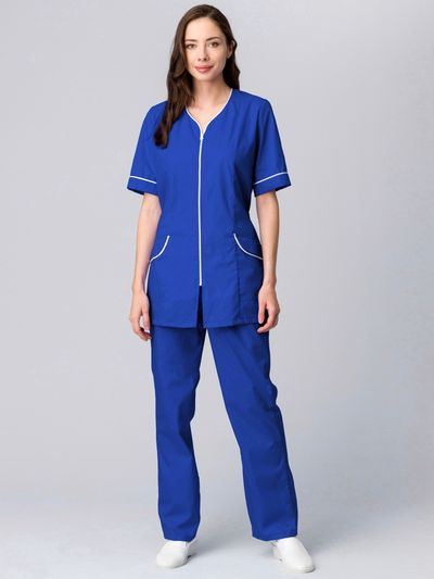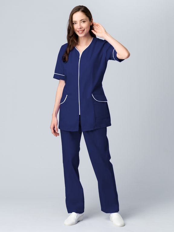 -атласным белым кантом отделаны клапаны карманов, горловина и рукава