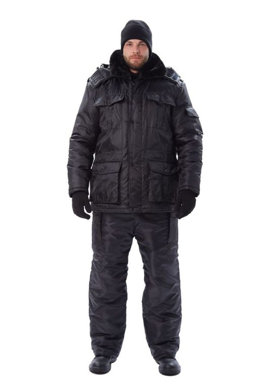 Куртка с застежкой на молнию и кнопки, меховым воротником, утепленным капюшоном. На куртке накладные объемные карманы, внутренний карман для документов, погоны на кнопках. Нижние карманы утеплены. Объем куртки регулируется по линии талии.