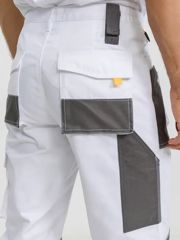 Изготовлен из прочной смесовой ткани белого цвета. Оптимальное соотношение хлопка и полиэстера в составе ткани позволяет телу дышать, одновременно защищая от истираний и загрязнений.
