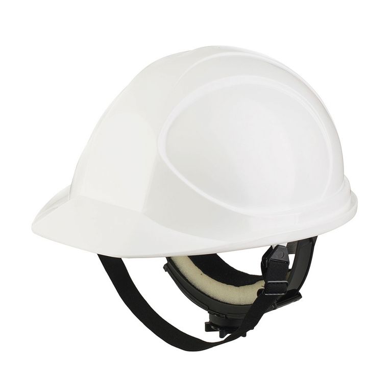 Защитная каска с текстильным оголовьем и плавным регулятором размера.