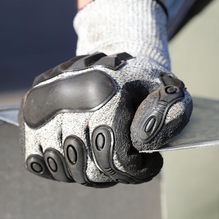 Противоударные накладки из полимерного (ТПР) материала обладают оптимальной плотностью и упругостью, располагаются на внешней стороне ладони, и защищают пястные кости и фаланги пальцев от ударов и травм, вызванных механическим воздействием.