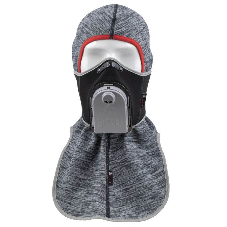 Защитная многофункциональная тепловая маска представляет собой подшлемник и маску из неопрена с закреплённым на ней пластиковым блоком подогрева вдыхаемого воздуха (рекуператором). Флисовый подшлемник выполнен с пелериной, которая защищает шею, верхнюю часть груди и спины.