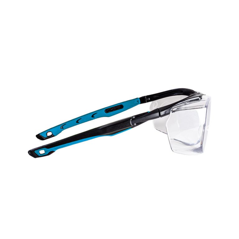 Главной особенностью этой модели очков является то, что их очень комфортно носить поверх очков для коррекции зрения и при этом они обеспечивают периферийную защиту глаз.