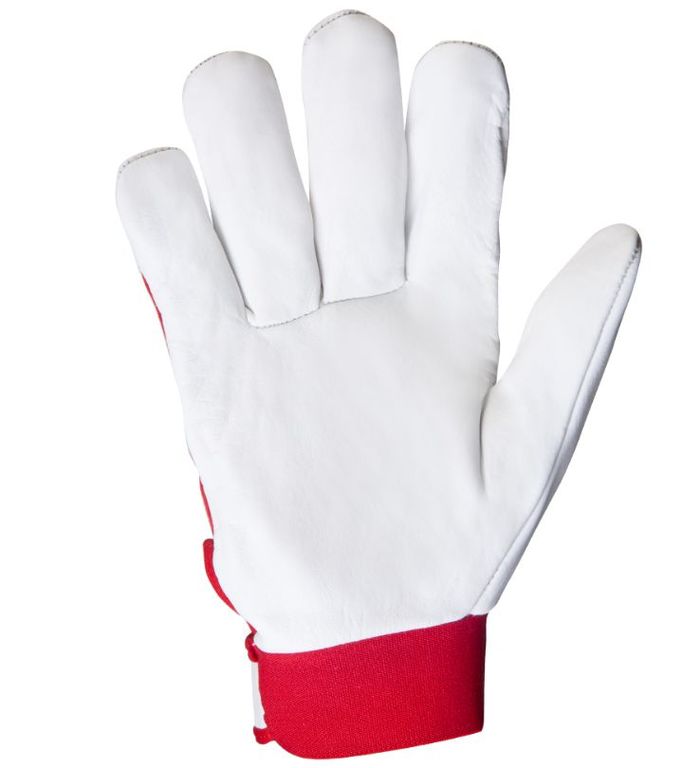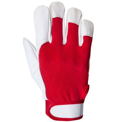 Перчатки кожаные JLE301 Mechanic с тыльной стороны из хлопка, цвет крас/бел