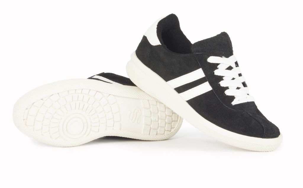 Кроссовки нат.замша ПВХ, черный/белый