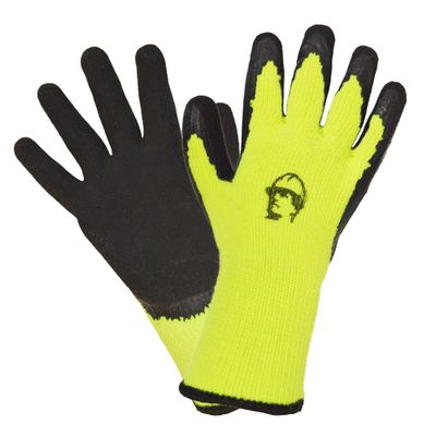 Перчатки с акриловой нитью, покрыты черным вспененным латексом.