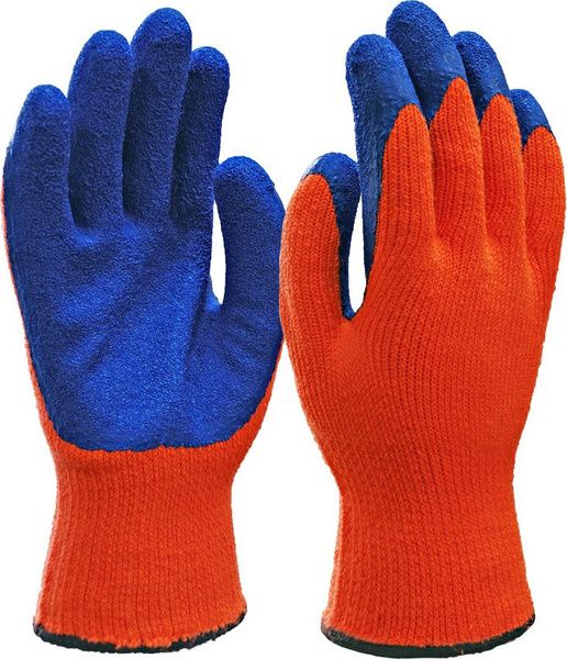 Бесшовная плотная основа плотностью 7G (7 петель), с ворсом с внутренней стороны перчатки, с частичным покрытием ладони и пальцев вспененным латексом.
