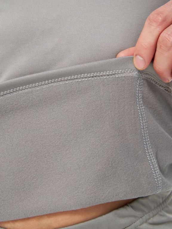 Плоские швы способствуют износостойкости и не натирают кожный покров. Удлинённая спинка фуфайки надёжно прикрывает поясницу даже при высоко поднятых руках.