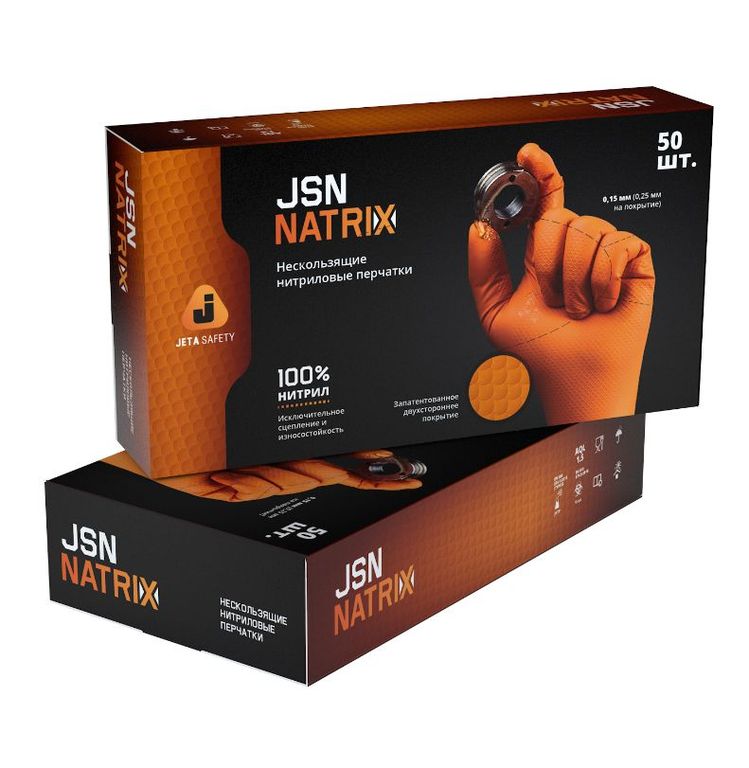 Перчатки JSN NATRIX нескользящие нитриловые, упак 50шт, оранжевые