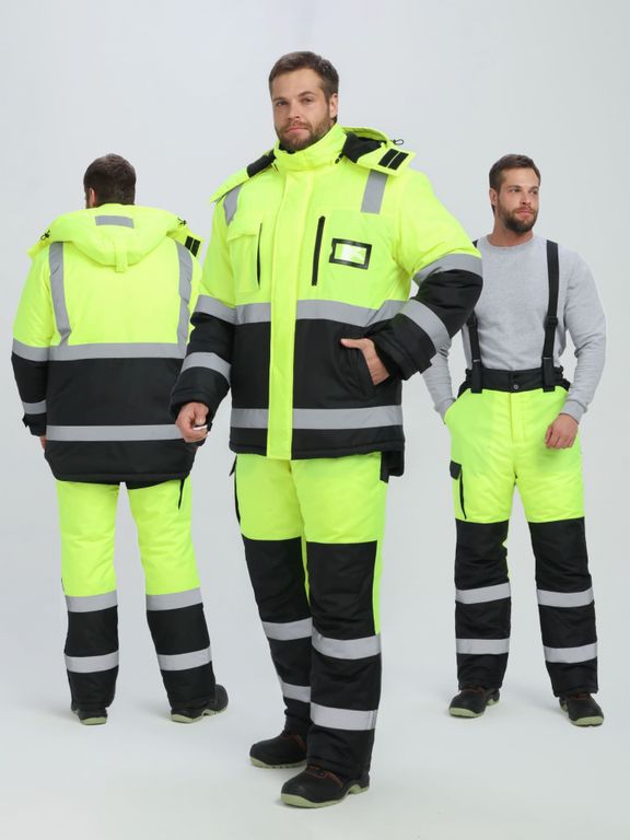 Костюм зимний сигнальный ProfLineSpecialist (тк.Оксфорд PU) брюки, желтый/черный