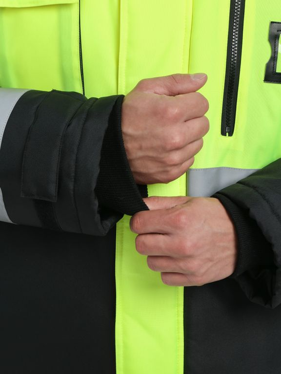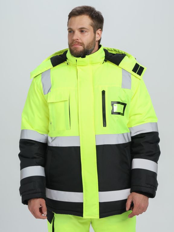 - съемный утепленный капюшон - вертикально расположена светоотражающая полоса шириной 50мм