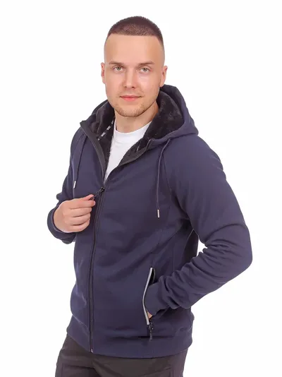 Стильная и очень теплая толстовка с подкладкой из искусственного меха с капюшоном, который добавляет дополнительную защиту от ветра и осадков.